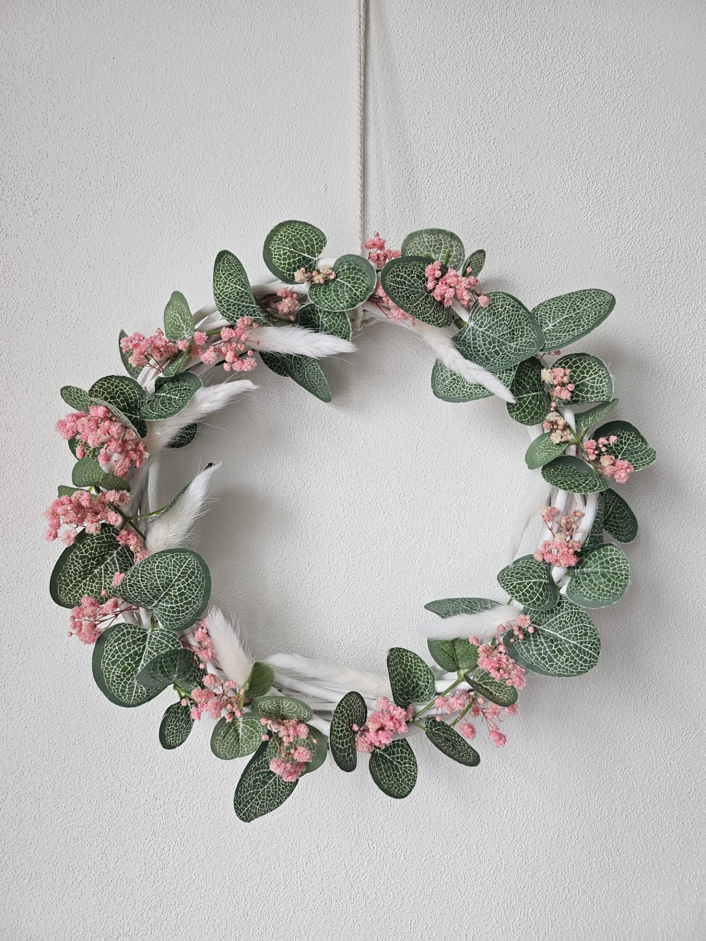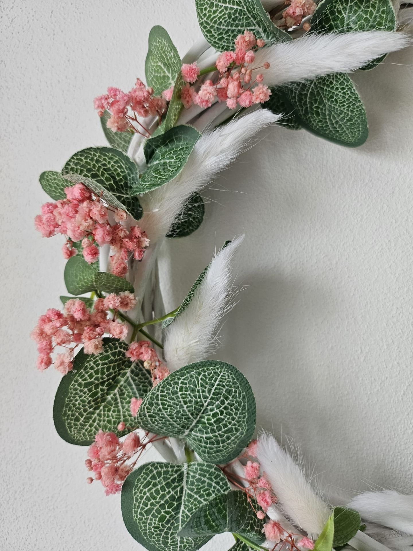 Jemná a romantická dekorace, která rozzáří každý domov. Tento květinový věnec je laděný do přírodních tónů a působí svěže, elegantně a velmi vkusně. Perfektní doplněk na dveře i do interiéru, kde vytvoří příjemnou a útulnou atmosféru. Dopřejte si kousek květinové krásy u vás doma.